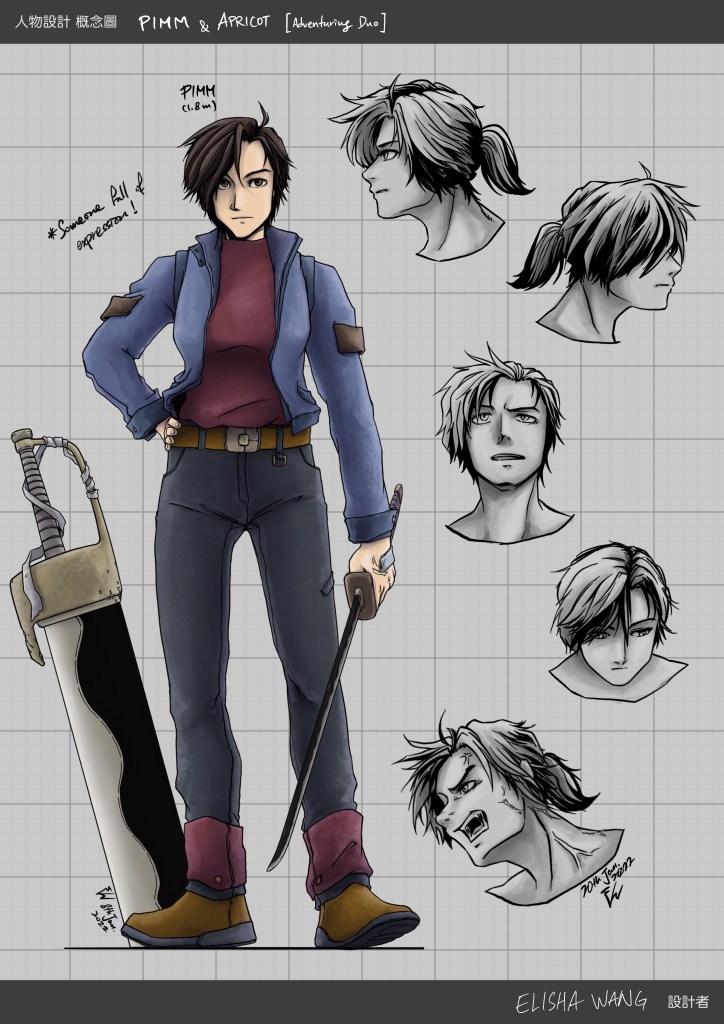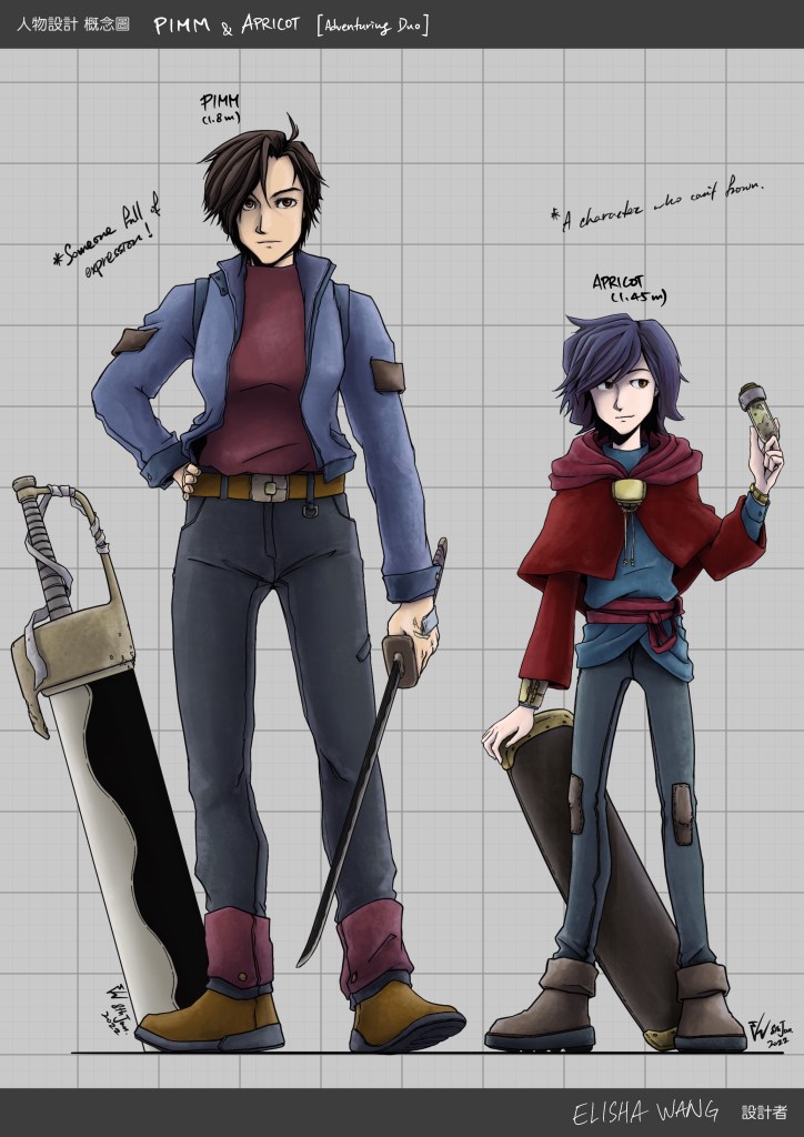 Trying do some proper(?) character design sheets for these two characters. Two of the main characters of a (very rough and random) sci-fi adventure (?) story that came out of some spitballing sessions with Phoebe. Code named: Chelone.